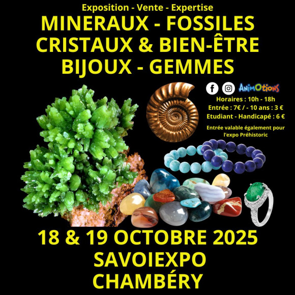6ème Salon Minéraux Fossiles Cristaux & Bien-Être Bijoux et Gemmes + Exposition Préhistoire